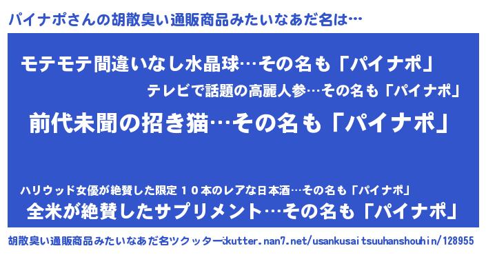 | ヘコむあだ名 | 『パイナポ(笑)』『パイにゅー』 |