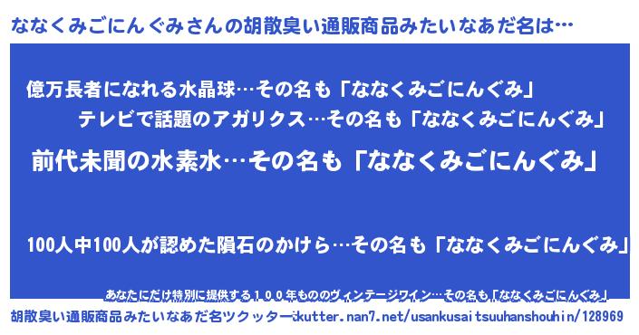 ななくみごにんぐみさんの胡散臭い通販商品みたいなあだ名をツクッター!