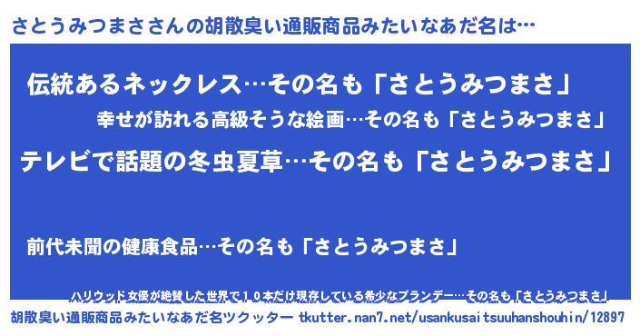 | 伝説のあだ名 | 『解き放たれた遊び人さとうみつまさ』 |