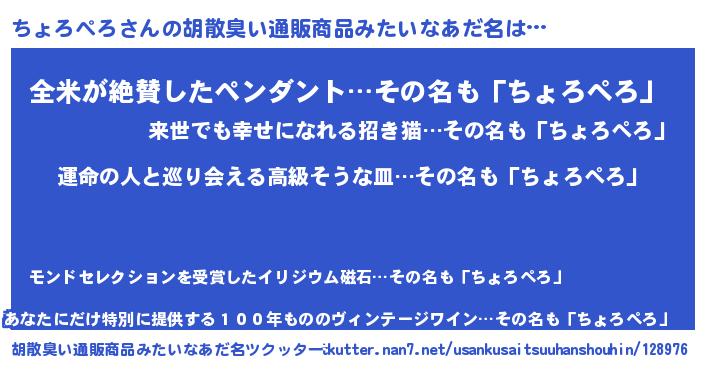 | 意味不明あだ名 | 『ちょろぺろフォーエバー』 |