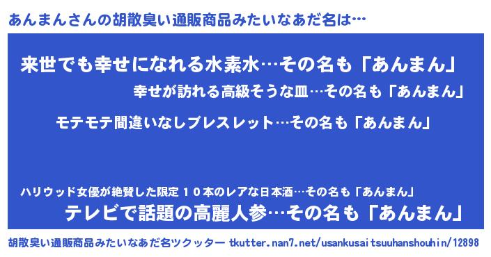 | ヘコむあだ名 | 『あんふぇ~』『あんまん(小並感)』 |