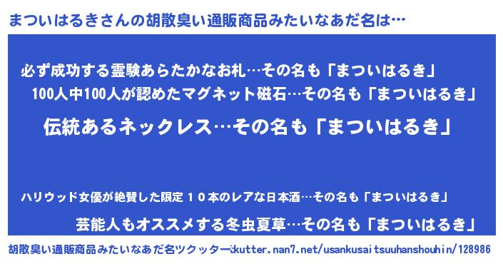 | 意味不明あだ名 | 『とにかく怪しいまついはるき』 |