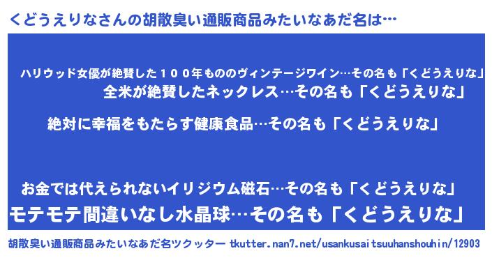 | 恥ずかしいあだ名 | 『くどちん』『プリティーくどうえりな』 |