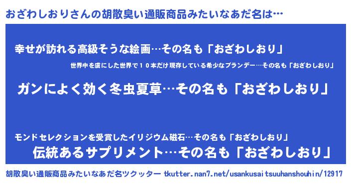 | 意味不明あだ名 | 『自称おざわしおり』 |