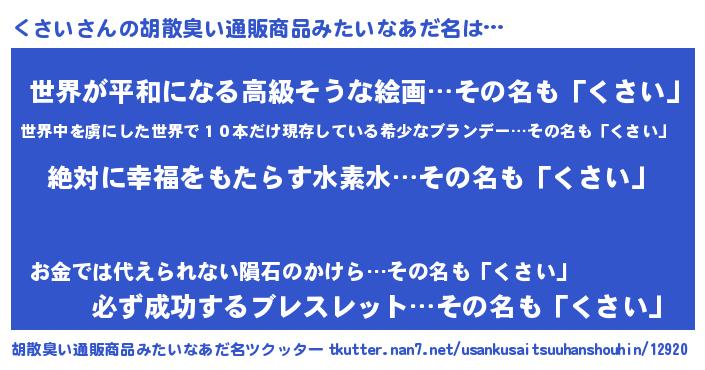 | ヘコむあだ名 | 『くさい(遠い目)』『豆乳』『くさお』 |