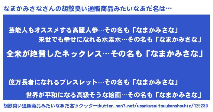 | 意味不明あだ名 | 『とにかく怪しいなまかみさな』 |