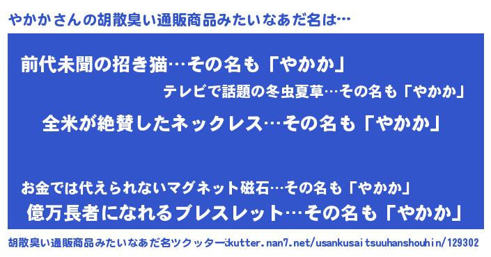 | ヘコむあだ名 | 『やかっ子』『やかか(笑)』 |