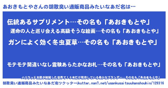 | ヒーロー風カッコイイあだ名 | 『ウルトラ戦士アオキモトヤ』 |