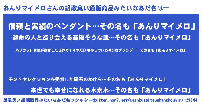 | 意味不明あだ名 | 『住所不定無職あんりマイメロ(85歳)』 |