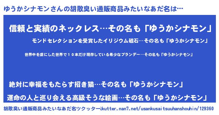 | 女子向けラノベタイトル風あだ名 | 『乙女ゲームの破滅フラグしかない悪役ゆうかシナモンに転生してしまった…』 |