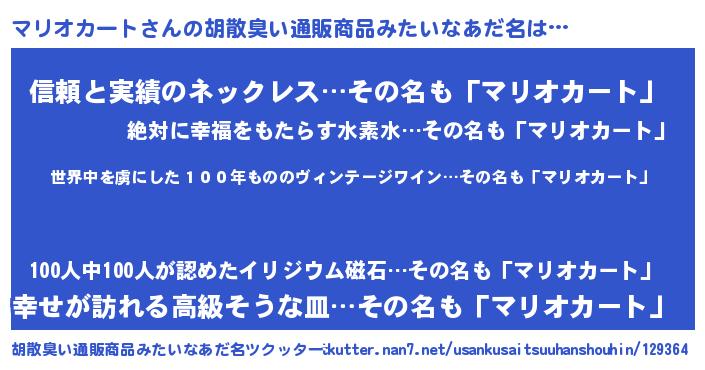 | 意味不明あだ名 | 『住所不定無職マリオカート(5歳)』 |
