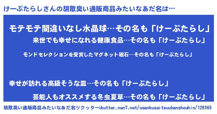 | 肩書あだ名 | 『けーぷたらし教授』『けーぷたらしCEO』 |