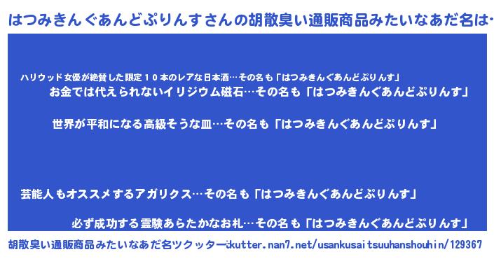 | ファンタジー風あだ名 | 『エターナルハツミキングアンドプリンスー』 |