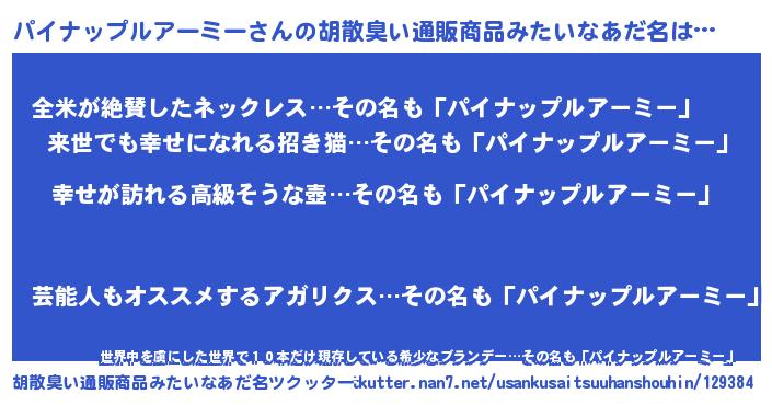| 男性向けラノベタイトル風あだ名 | 『緋弾のパイナップルアーミー』 |