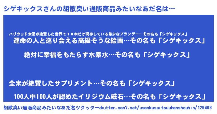 | 意味不明あだ名 | 『永久保存シゲキックス』 |