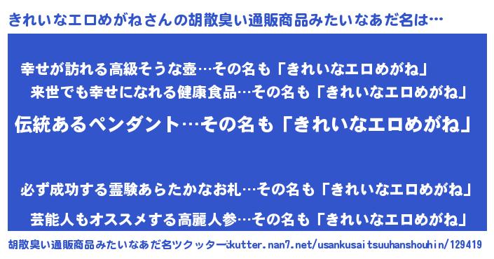 意味不明あだ名 | 『とにかく怪しいきれいなエロめがね』 |