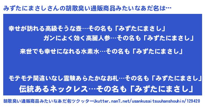 | 意味不明あだ名 | 『永久保存みずたにまさし』 |