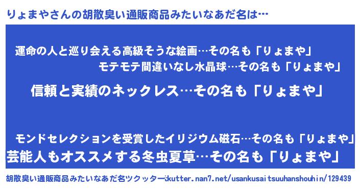 | ポケモン風あだ名 | 『ヒリョマヤ』『リョマダネ』 |
