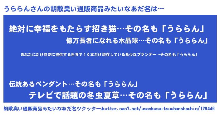 | ヘコむあだ名 | 『うららん(遠い目)』『うらふぇ~』 |