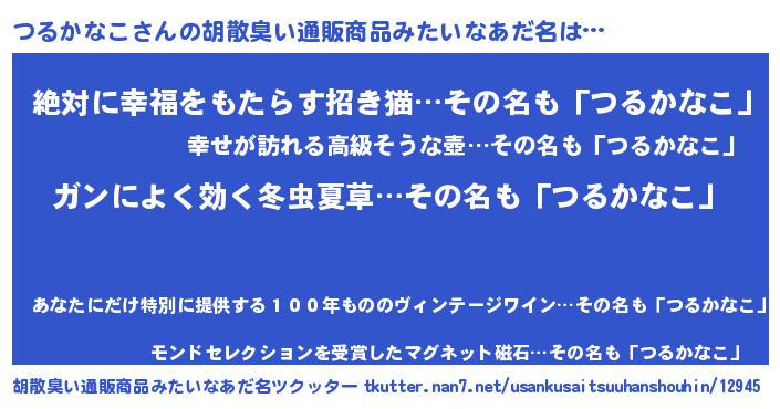 つるかなこさんの胡散臭い通販商品みたいなあだ名をツクッター!