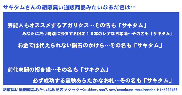 | ヒーロー風カッコイイあだ名 | 『愛の使者サキタム』『究極戦士サキタム』 |