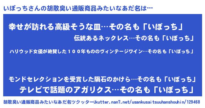 | 意味不明あだ名 | 『住所不定無職いぼっち(3歳)』 |