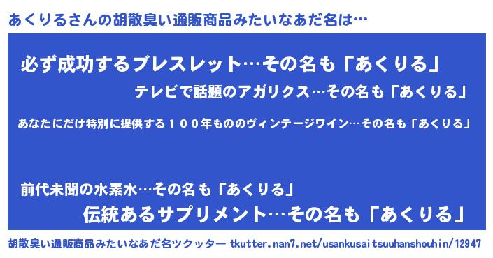 | 意味不明あだ名 | 『住所不定無職あくりる(3歳)』 |
