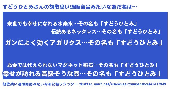 | ヘコむあだ名 | 『すどうひとみ(笑)』『豆乳』 |