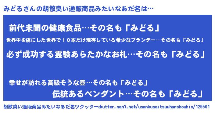 | 意味不明あだ名 | 『ペロリンみどる』『永久保存みどる』 |