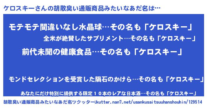 | ヘコむあだ名 | 『ケロスキー(爆)』『ケロもー』 |