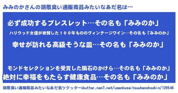 | 恥ずかしいあだ名 | 『みみっちょ』『プリティーみみのか』 |