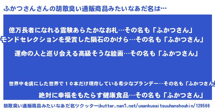 | 意味不明あだ名 | 『ふかつさんフォーエバー』 |