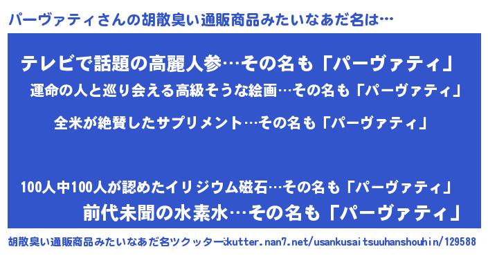 | ヘコむあだ名 | 『パーお』『パーヴァティ(遠い目)』 |