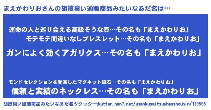 | 意味不明あだ名 | 『自称まえかわりお』 |