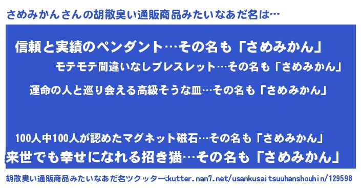 | 欧米人風あだ名 | 『さめみかんクリステル』 |