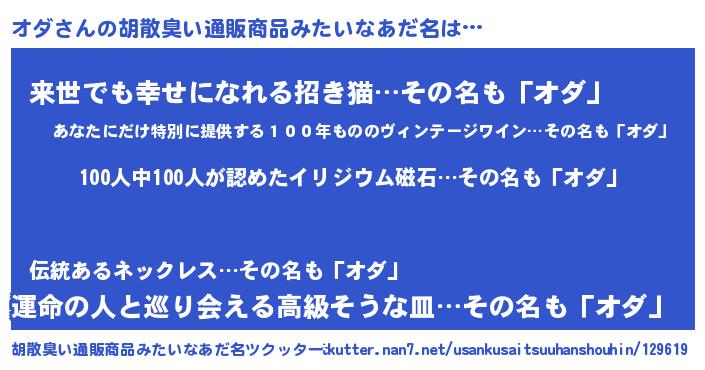 | ヘコむあだ名 | 『オダ(笑)』『豆乳』『オダっちょ』 |