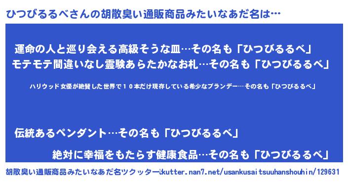 | 欧米人風あだ名 | 『ひつびるるべ・ステッグマイヤー』 |