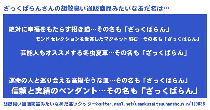 ざっくばらんさんの胡散臭い通販商品みたいなあだ名をツクッター!