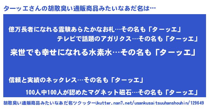 | ヘコむあだ名 | 『ターッエ(震え声)』『ターっふぃ~』 |