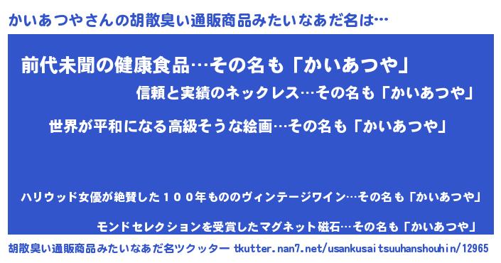 | 意味不明あだ名 | 『かいあつやフォーエバー』 |