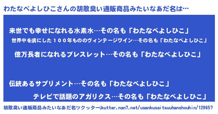 | ヘコむあだ名 | 『わたにー』『わたなべよしひこ(震え声)』 |