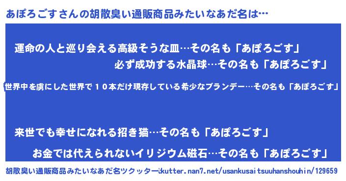 | 意味不明あだ名 | 『住所不定無職あぽろごす(95歳)』 |