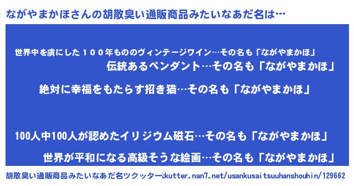 | 伝説のあだ名 | 『聞きしに勝る吟遊詩人ながやまかほ』 |