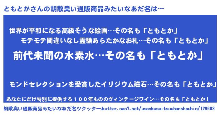 | 意味不明あだ名 | 『永久保存ともとか』『ペロリンともとか』 |