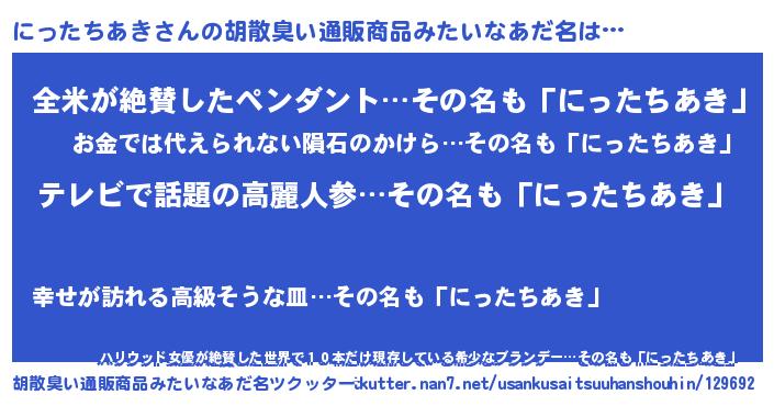 | 肩書あだ名 | 『にったちあき閣下』『にったちあき塾長』 |