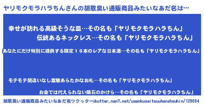 | 意味不明あだ名 | 『住所不定無職ヤリモクモラハラちん(41歳)』 |