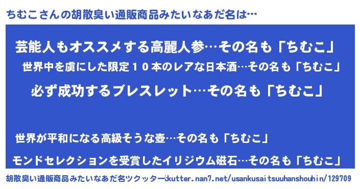 | 男性向けラノベタイトル風あだ名 | 『緋弾のチムコ』『ちむこの憂鬱』 |