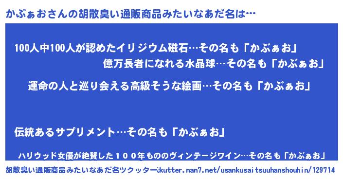 | ヒーロー風カッコイイあだ名 | 『ウルトラかぶぁおマン』『仮面カブダー』 |