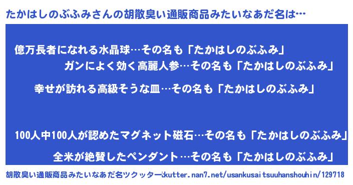 | 男性向けラノベタイトル風あだ名 | 『緋弾のタカハシノブフミ』 |