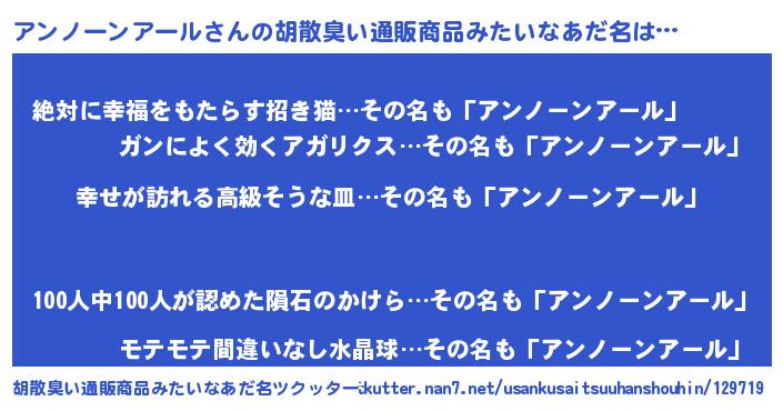 | 意味不明あだ名 | 『アンノーンアールフォーエバー』 |